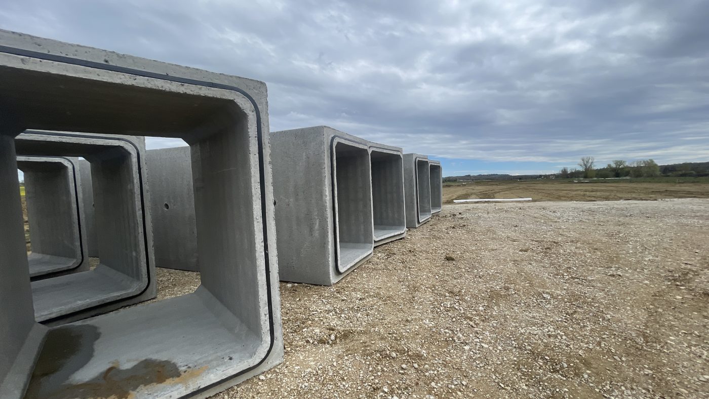 La solución adoptada contempla distintos pasos bajo la autovía, con secciones de 2000×2000 mm, 1500×2000 mm y 1500×1500 mm, lo que permitió adaptar el diseño a las necesidades hidráulicas y funcionales de cada punto del trazado. El uso de marcos prefabricados garantizó una elevada precisión dimensional, una ejecución rápida en obra y una excelente durabilidad estructural, aspectos clave en infraestructuras sometidas a tráfico intenso y a exigencias técnicas elevadas.