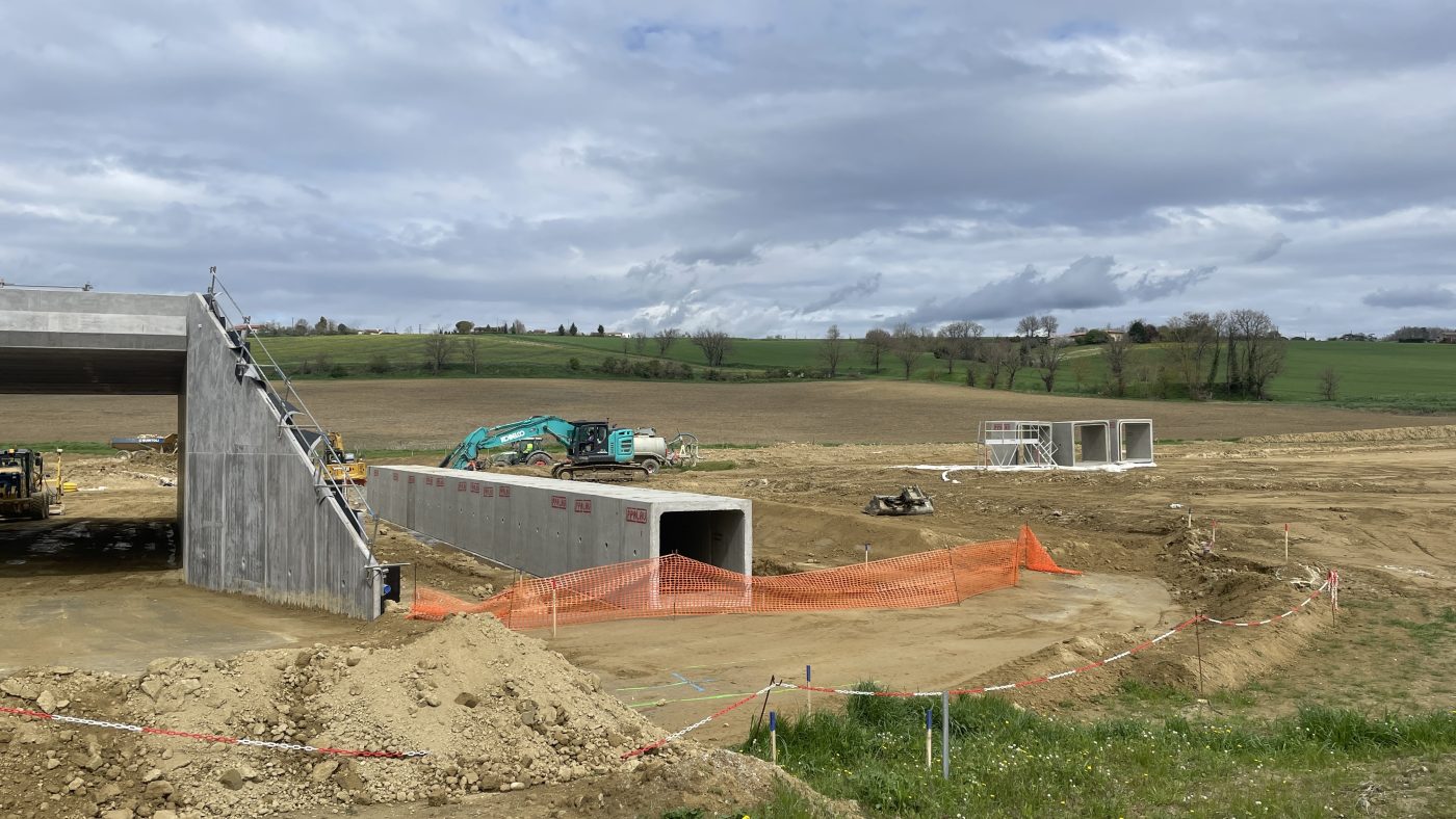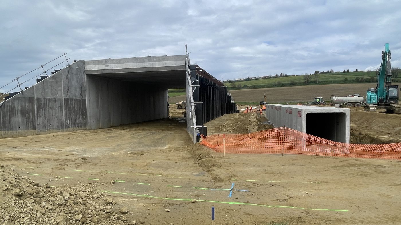 En esta actuación ubicada en Castres, en el departamento francés del Tarn (región de Occitania), se ejecutó una obra de infraestructura vinculada a la autovía A69, consistente en la construcción de varios pasos inferiores mediante marcos prefabricados de hormigón suministrados por PPalau.